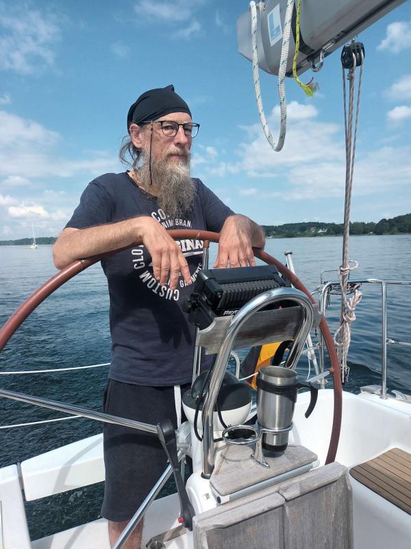 Heute war ein warmer Sommertag mit viel Sonne jedoch ohne Wind, so dass wir Pulpito zum Motorboot umfunktioniert haben und nach Juelsminde gemotort sind. Heute hatten wir dafür Strömung mit, so dass es schneller ging als sonst bei Motorfahrt. Unterwegs haben wir einige Schweinswale gesehen, die sich aufgrund der vorhandenen Strömung gerne im Kleinen Belt tummeln. Und natürlich ist es immer wieder schön durch den Kleinen Belt mit seinen vielen Inselchen zu fahren.